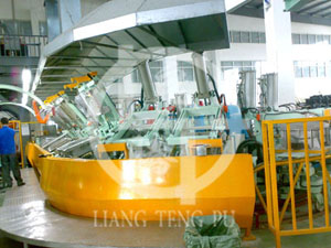 圓盤生產(chǎn)線具有優(yōu)良通配性,它可以與各種中、高溫彈性體澆注機(jī)進(jìn)行組合----彈性體生產(chǎn)線,圓盤生產(chǎn)線主要用于各種工礦輪的批量生產(chǎn)。
